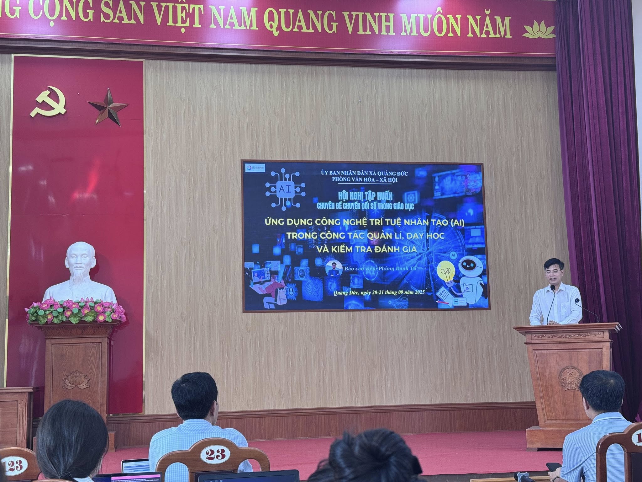 Ngày 21/9/2025, cán bộ quản lý và giáo viên Trường THCS Quảng Thành đã tham gia tập huấn về ứng dụng trí tuệ nhân tạo (AI) trong giáo...