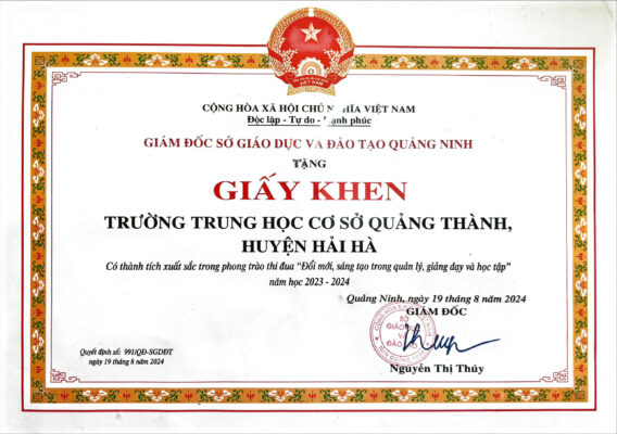 Trường THCS Quảng Thành xin chúc mừng em Lại Khánh Ly đã vinh dự nhận học bổng Vượt khó học tập, rèn luyện tốt năm 2025 do Hội...
